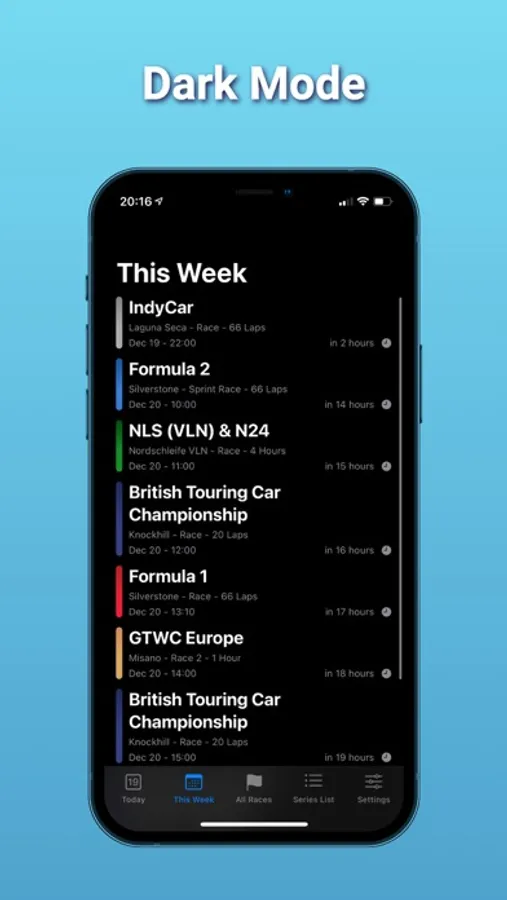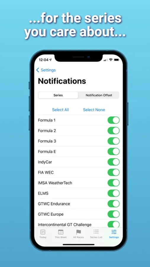 - CHOOSE YOUR SERIES: Select which series you want to see in your app. Build your own motorsport calendar by selecting the series you'd like to see, and de-selecting what you're not bothered about.