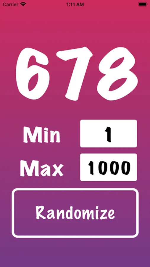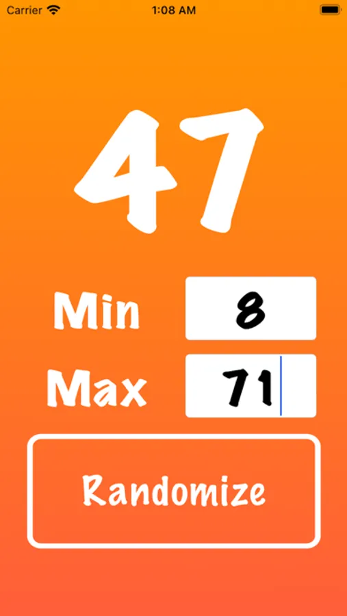 This app is the easiest and simplest random number generator available, just enter the range required and tap to randomize. Useful for a variety of purposes. Suitable with as small or as large numbers as you require.