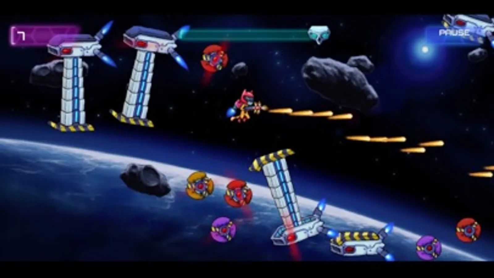 A stylish Side-Scroller / Shoot 'Em Up where you play as a space cat traveler making your way through enemy drones, to escape from your crashed ship!