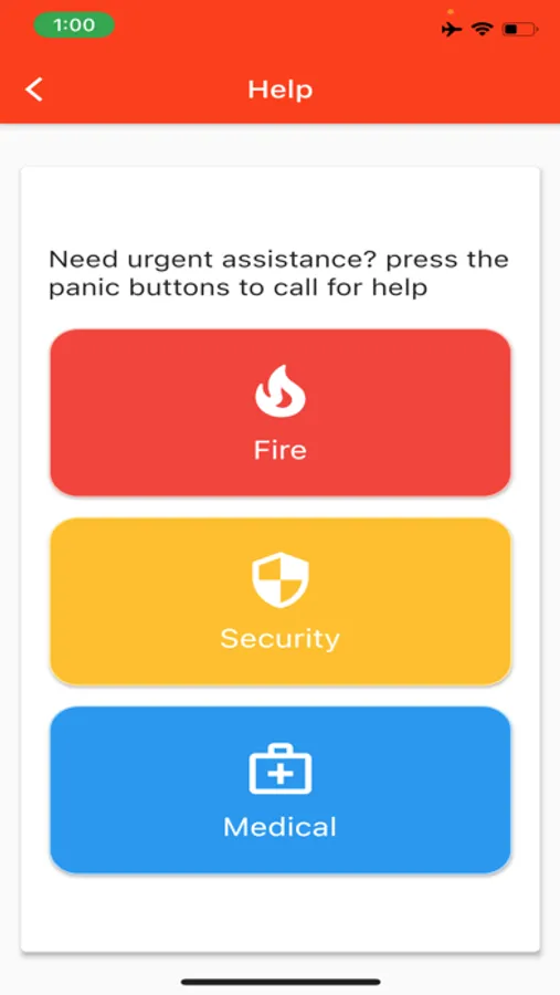- Panic Button to call for help for Fire, Security or Medical Emergency.