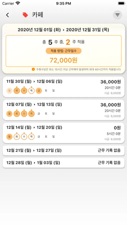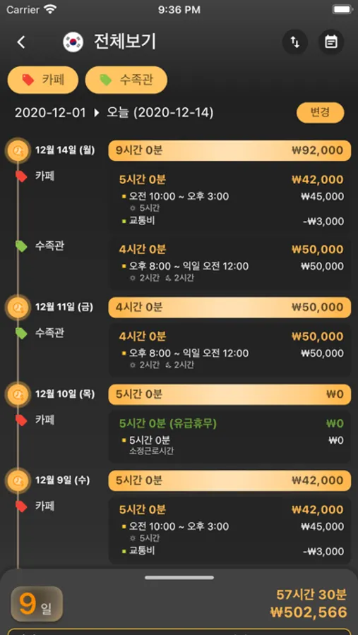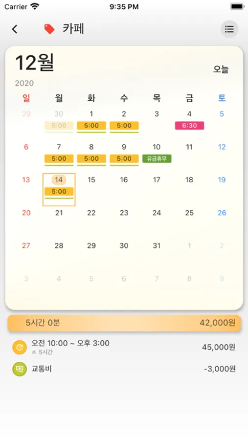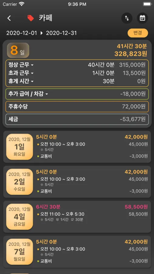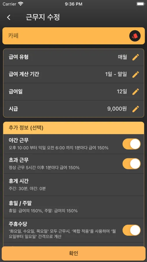 - 야간 근무, 초과 근무, 휴게 시간 설정 기능