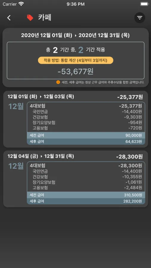 - 다양한 세금 유형 설정 (4대보험/프리랜서/직접입력)
