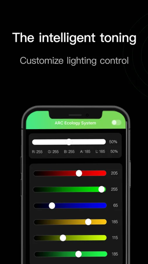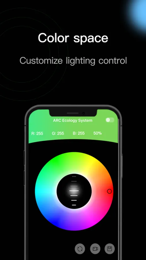 ARC Ecology System provides users with simple control functions of fixture setting, preset colors, CCT and color mixing through WiFi.