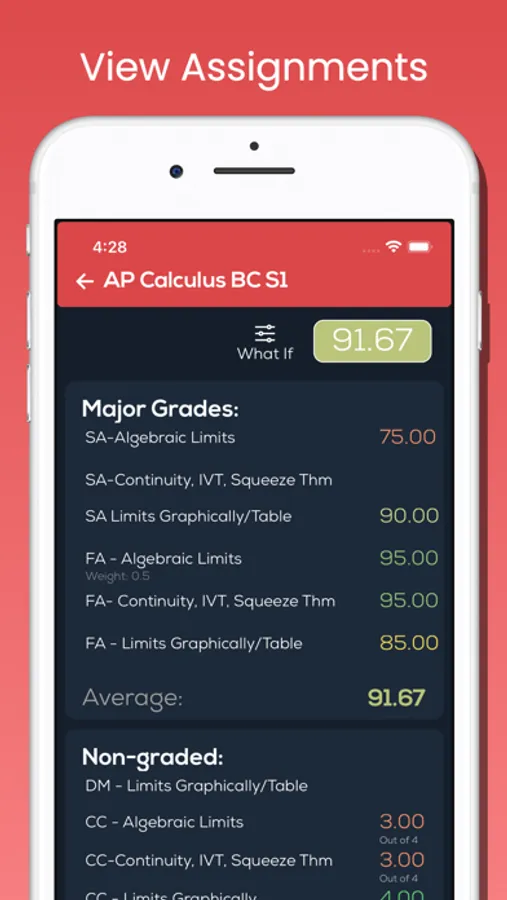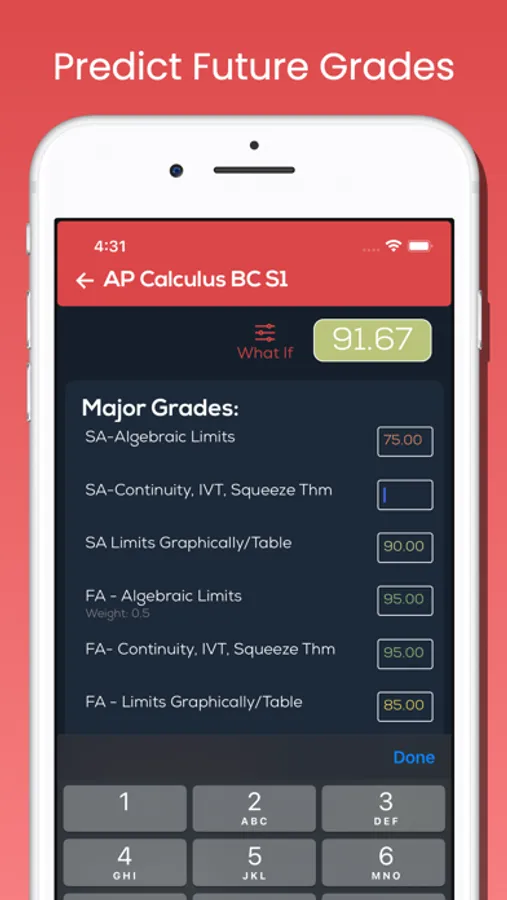 -Built in what-if calculator to predict and calculate future grades so students can prepare for upcoming assignments.