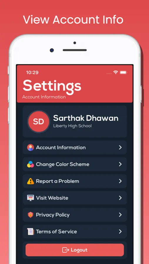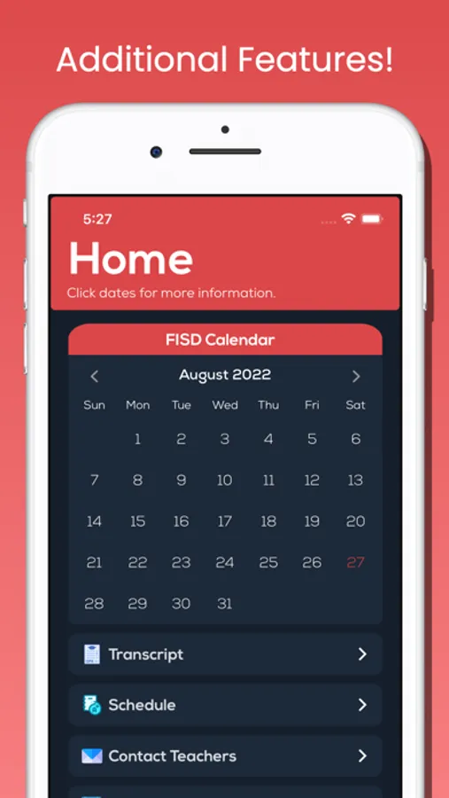 -Displays color coded calendar with all upcoming assignments and school scheduled holidays for the academic year.