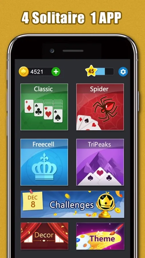 If you are not satisfied with the difficulty of one suit, you can also try two suits and four suits. Relaxing or challenging, there is always something for you .