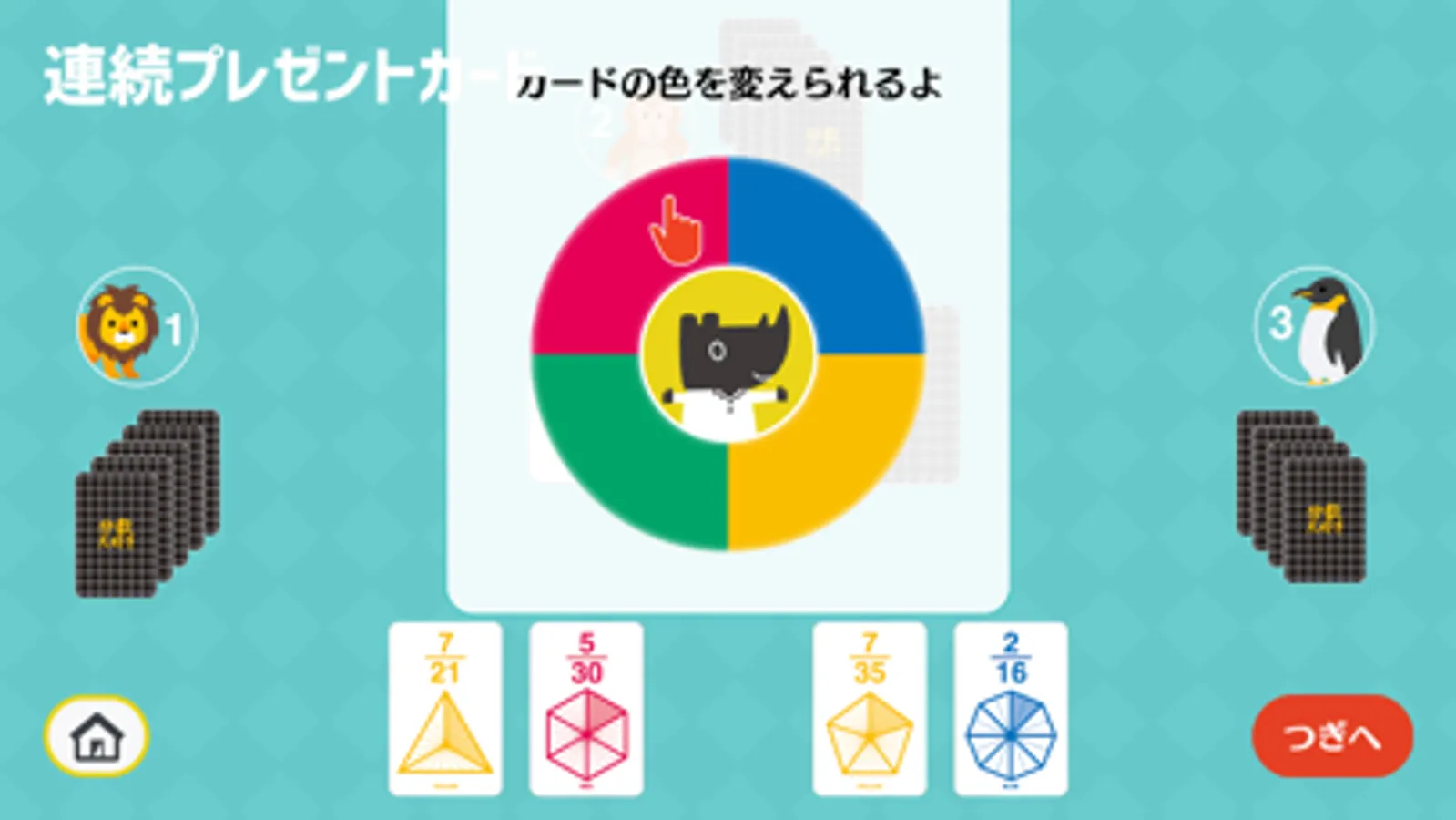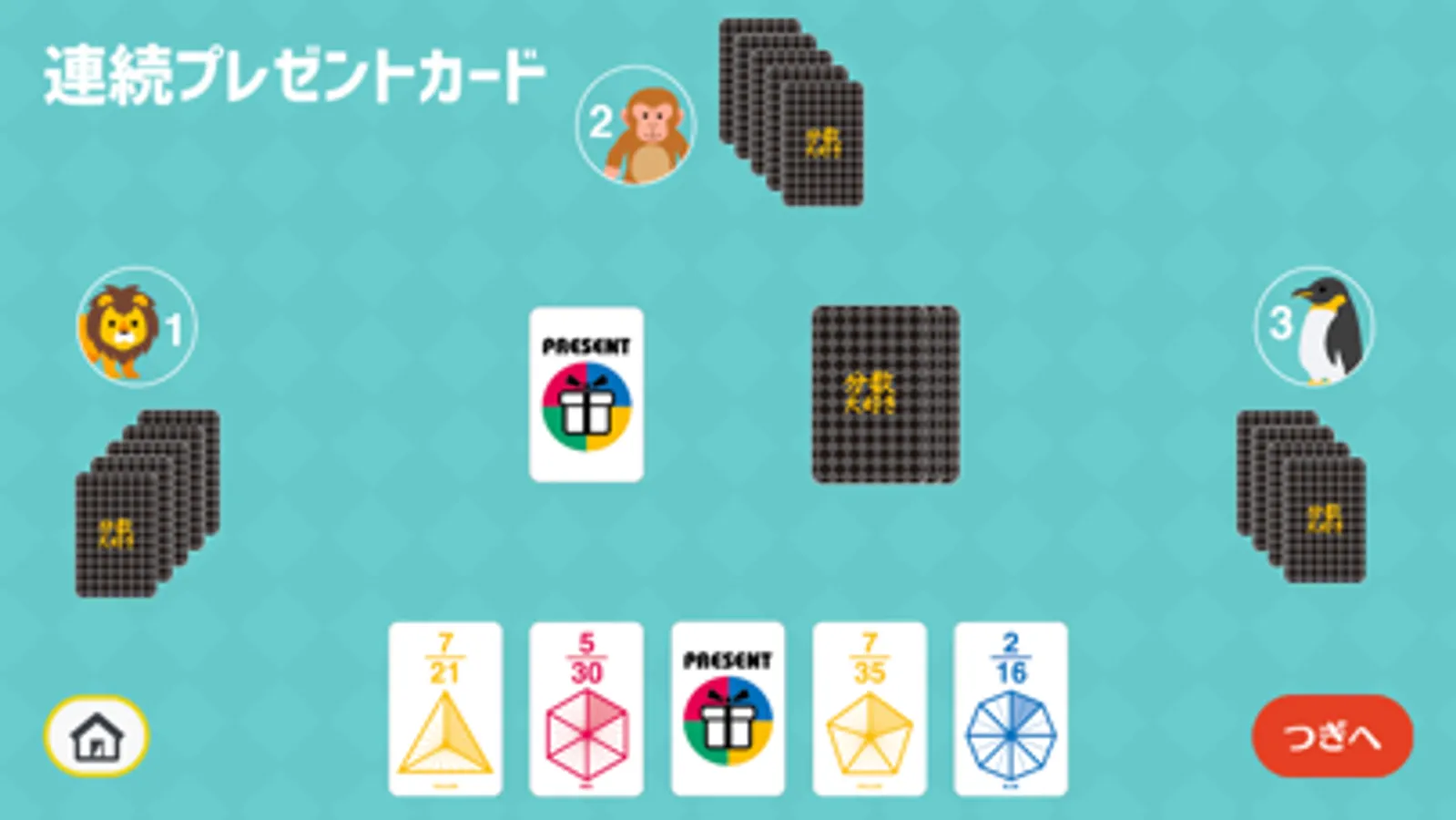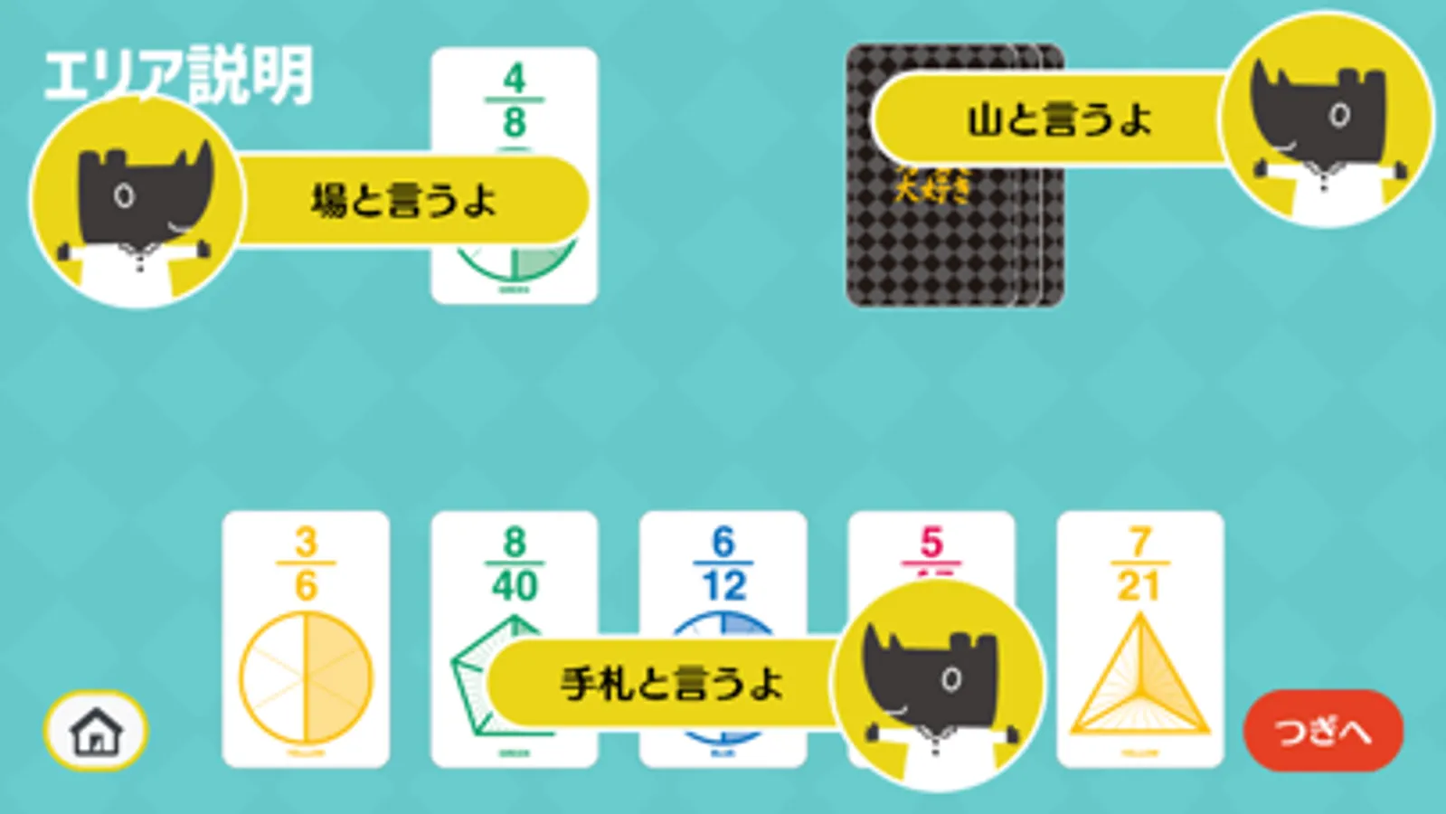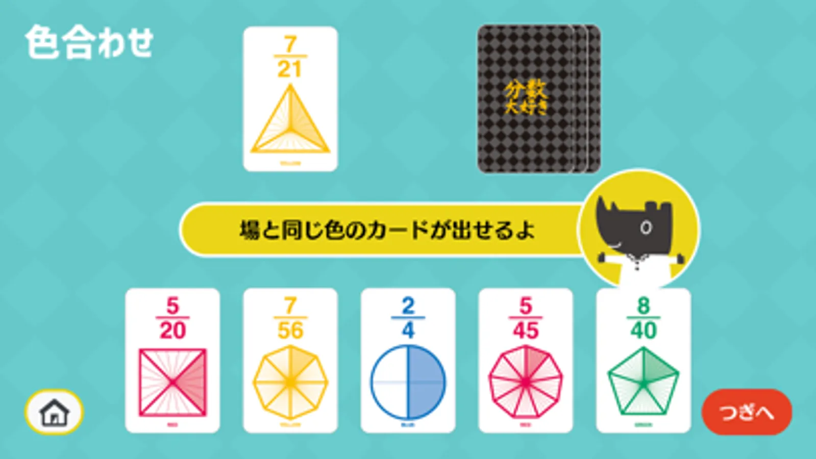 UNOのようなカードゲームで遊びながら分数が理解ができるカードゲーム「分数大好き」のチュートリアルアプリです。