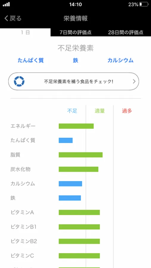 摂取した食事を登録すると、food coach が足りない栄養素を算出し、それを補う食品をご提案します。