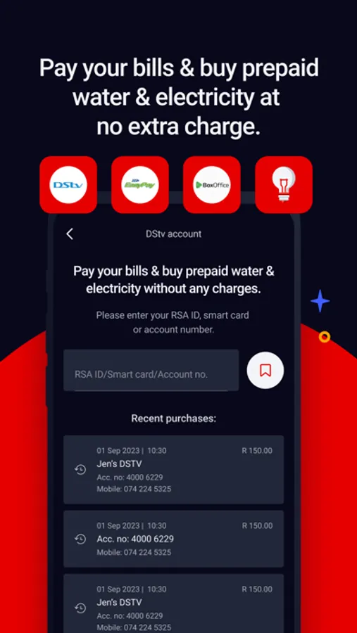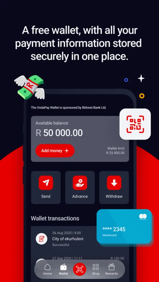 Access multiple different payment methods instantly in VodaPay, and choose the way you want to pay, whether with digital wallet or cards when you shop in-app or scan-to-pay to complete in-store purchases. You can send money to friends, pay your bills, buy prepaid water or electricity, top up your airtime, or buy data bundles, in an instant, no matter what network you use.