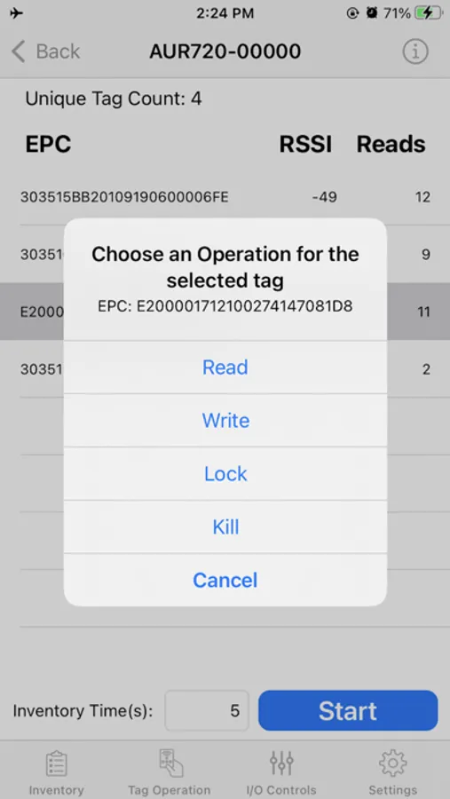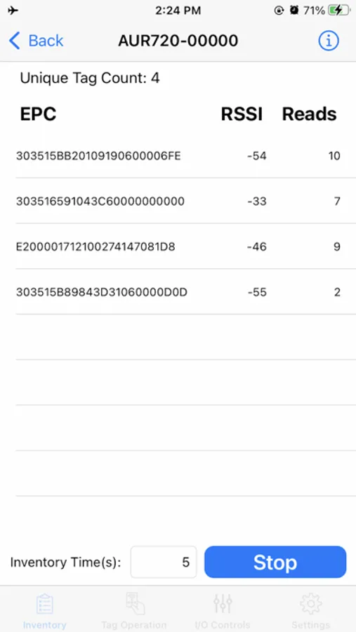 AUR720B Utility app is an UHF RFID application. It can control the AUR720 handheld reader via the wireless Bluetooth (BLE), and feature to display the reading RFID-tag data. The log data reading from barcode or RFID-tag can be downloaded to mobile device. This app can share the log data to your wanted person by the apps installed in mobile device, such as Facebook, Line or Email app.