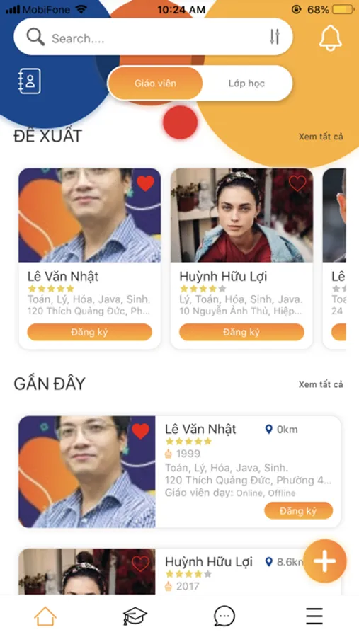 - Tìm kiếm gia sư và các lớp học nhanh chóng