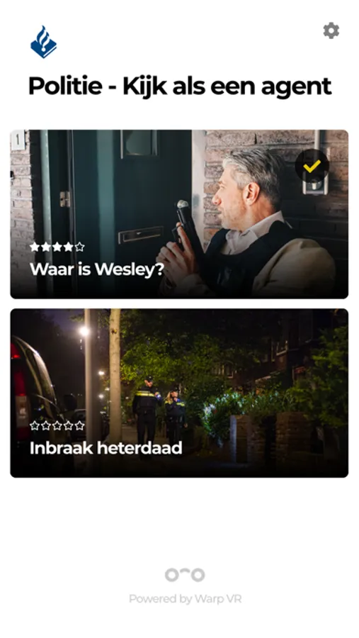 Politie zie je overal. Maar wat ziet de politie eigenlijk? Beleef het met dit VR-spel. Jij kijkt letterlijk door de bril van een politieagent. Jij draagt het uniform. Jij bent de agent of rechercheur.