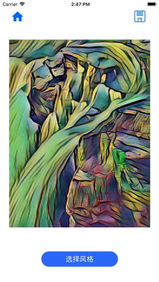 对所选中图片进行一键风格化,并实现保存及分享功能的图片处理工具