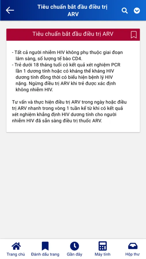 This app is a digitized version of the official HIV care and treatment guidelines no. 5456 from the Vietnamese Ministry of Health. The guidelines and app are available in both Vietnamese and English, and are free to access for any user.