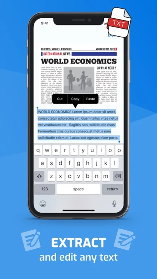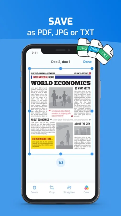 iScan - PDF & Photo Scanner that lets you can instantly scan, annotate your scanned document or print any written, printed, or graphic material and convert/save it to Text or PDF.
