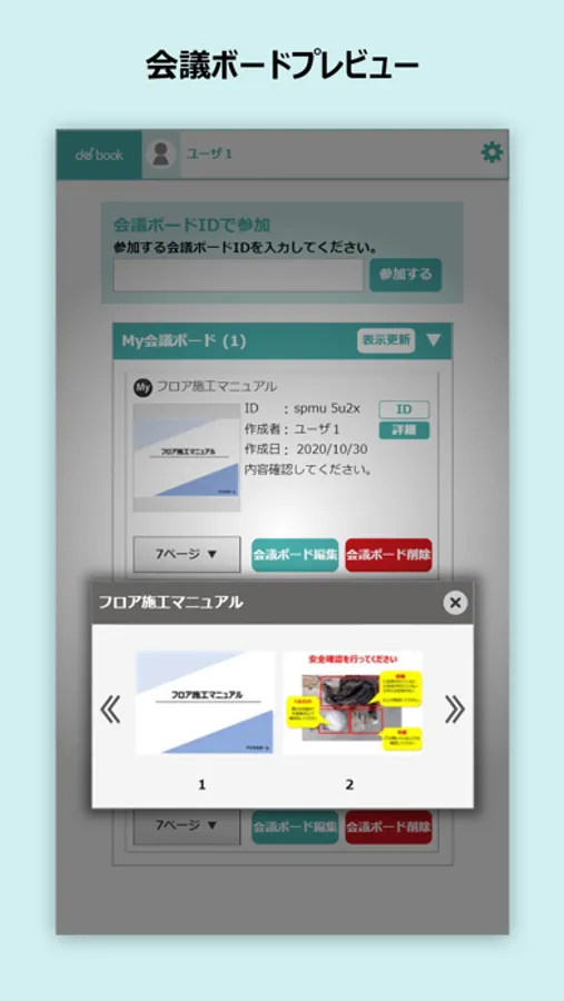 『do!book CB』はクラウド上の会議ボード(以下ボードと呼びます)に資料や写真を貼付けて、