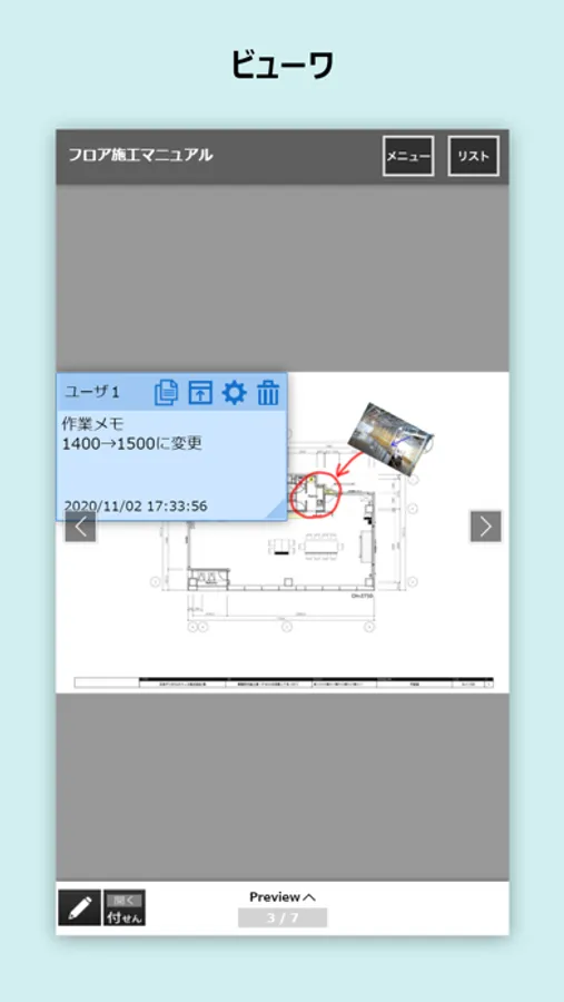 ボードの参加者はボード上で自由に付せんや音声メモ、写真を貼付けることができます。