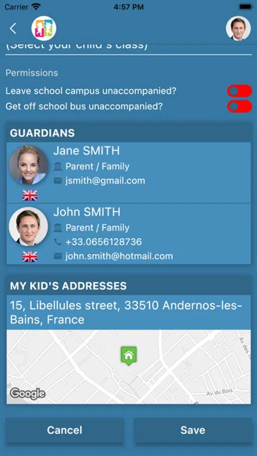 Xebus Parent is a mobile application that allows parents to register their children to the transportation service of a school and to get notified from events such as when their children get on/off their school bus, when they enter/leave their school compound, when their school bus is approaching to their bus stop.