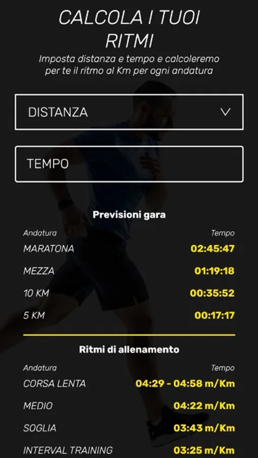 - Salvare e tenere sempre monitorati i tuoi personal-best e calcolare i tuoi ritmi di allenamento in base ad essi