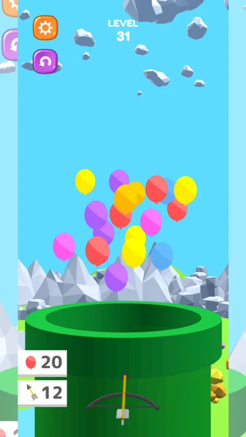 - The game is over when even one balloon reaches the ceiling or the number of arrows reaches zero.