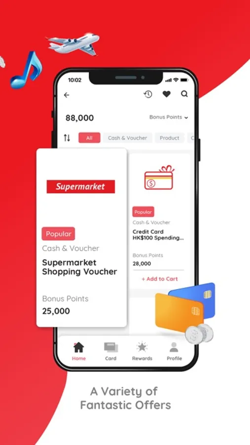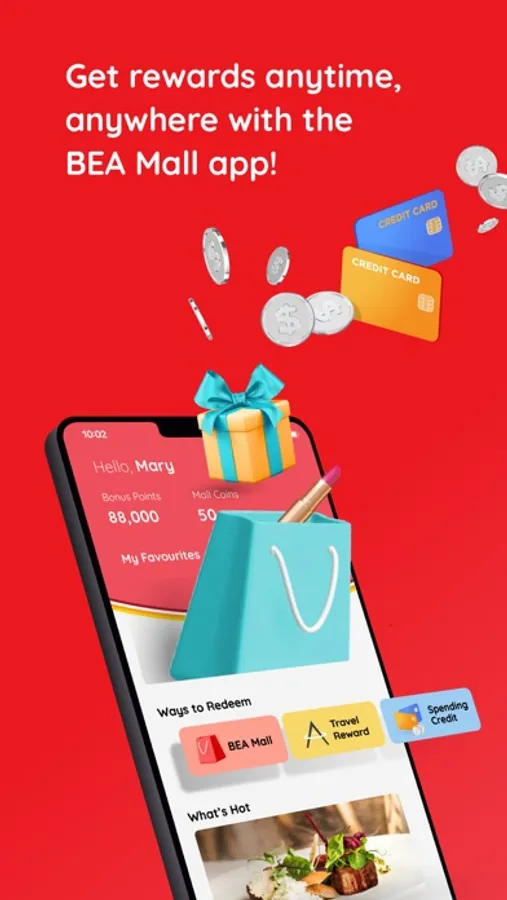 • Redeem your bonus points for various vouchers and Asia Miles (Available for the eligible BEA credit cards)