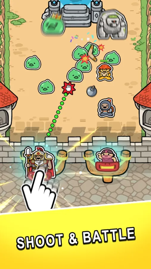Pull back and fling the mercenaries and magic on the launch pad to launch them towards the field.
