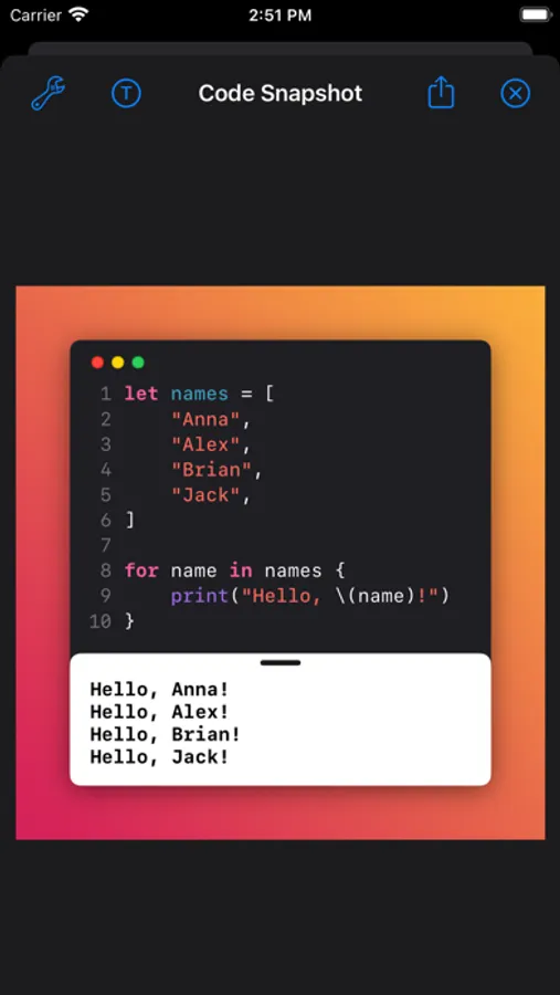 • Code Snapshot (PNG, JPEG, HEIC or PDF)