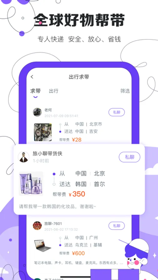 【好物帮带】全球好物帮带,专人快递安全、放心、省钱;共享行李空间,赚取更多佣金
