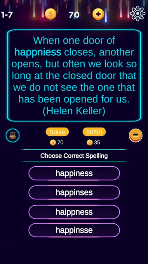 Guess the spelling learning with motivational quotes. Education with fun you can learn English spelling without any stress and your motivation level goes up every morning. It is meaningful and every day useful, productive and increases your English language level with guess the spelling.