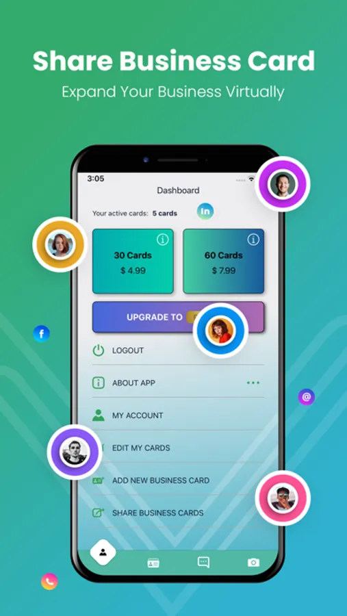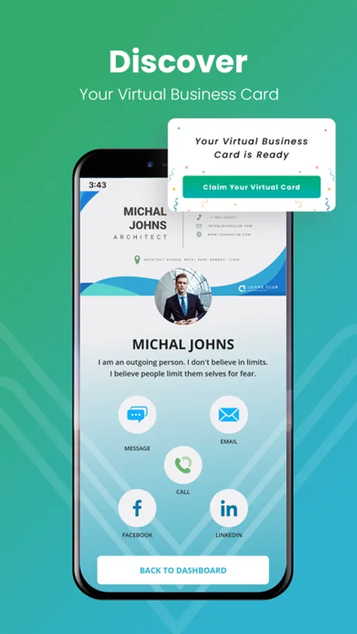 - Social Link: You can link your LinkedIn & Facebook profiles to your card.