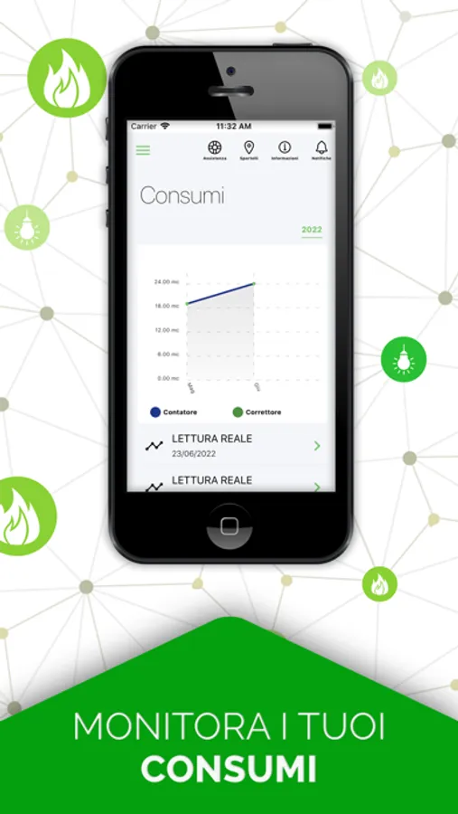 • Visualizzare i propri consumi con un comodo grafico;