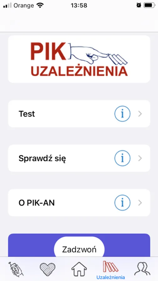 Testy – umożliwia przeprowadzenie testów z zakresu uzależnień w celu oceny problemu