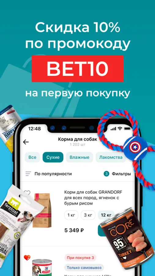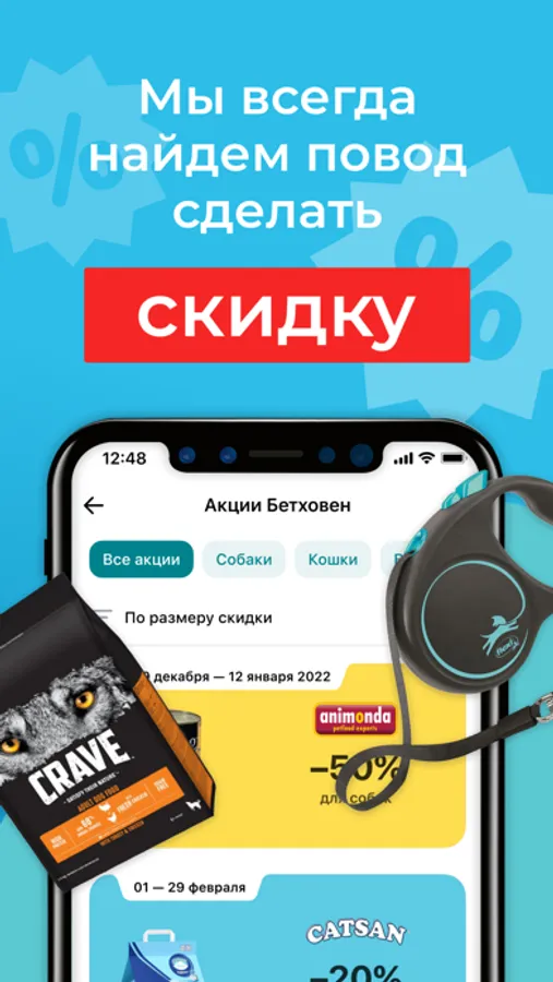 Все для Вашего питомца в одном приложении: корма, лакомства, аксессуары, наполнители, переноски, когтеточки, клетки, домики, аквариумы, ветеринарные средства и многое другое не выходя из дома.