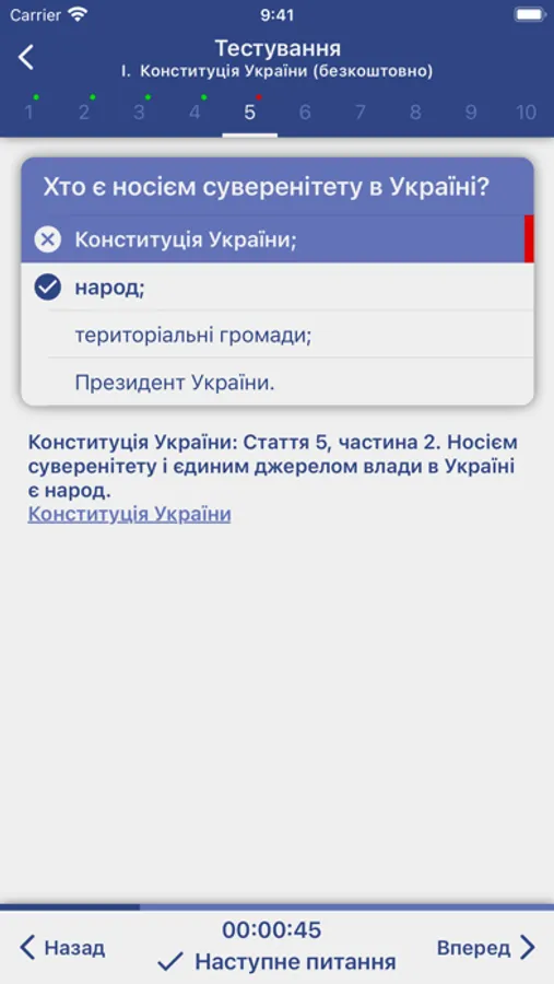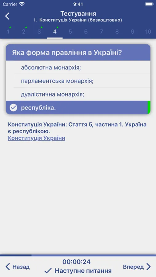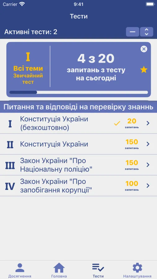 Додаток створений для легкого вивчення, запам'ятовування та повторення питань, за якими відбувається тестування в Національну Поліцію.