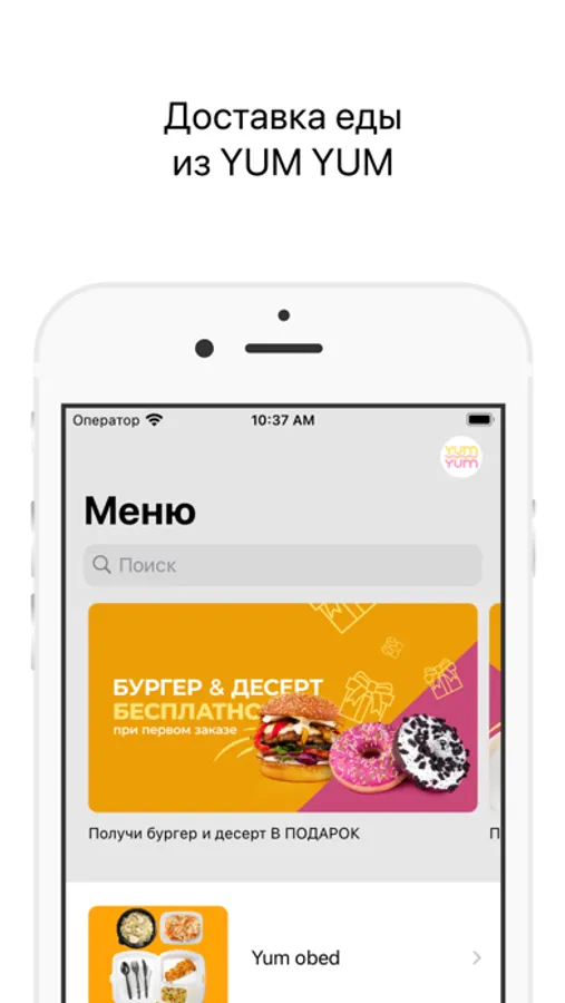 Как сделать заказ в приложении “YUM YUM”: выберите понравившиеся позиции из меню, добавьте их в корзину и перейдите на экран оформления заказа (по нажатию на иконку корзины).