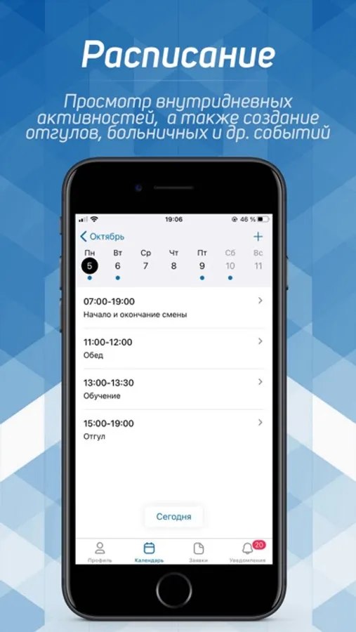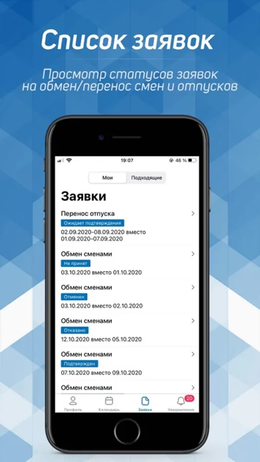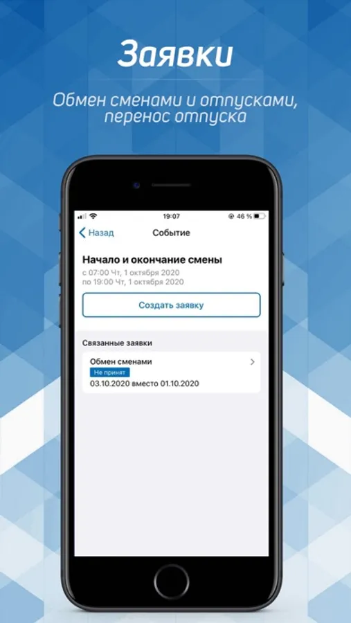 - Не нужно звонить, писать письма и использовать другие каналы для того, чтобы уведомить о больничном, перенести отпуск или обменяться сменами с коллегами! Теперь для этого достаточно зайти в приложение и создать событие или заявку на обмен/перенос.