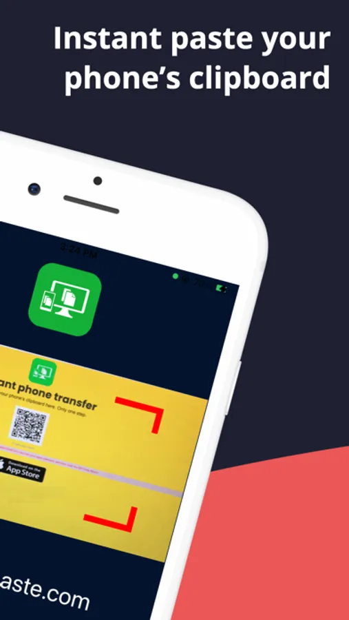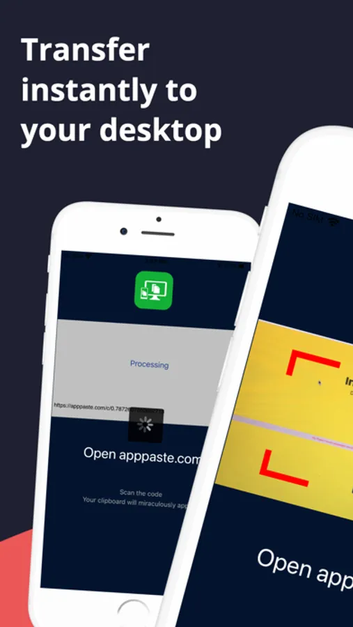 3) Open apppaste.com on a browser on one of your other devices. On the https://apppaste.com website you will see a qrcode. Scan that code from App Paste app and within a few seconds the contents of your clipboard will show up on the https://apppaste.com so you can then use that text on your desktop (just click the text to copy it)