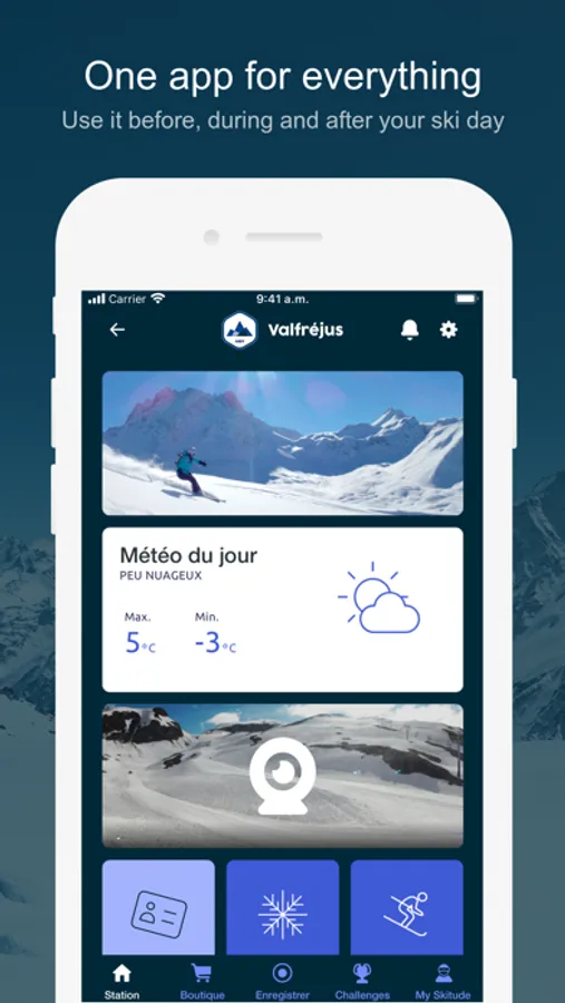 The App offers a range of features designed to optimize your experience before, during and after your trip. It’s very simple, plan your getaway and get real time updates on slope conditions. Set up your Skitude profile and track your activities on the slopes to get detailed stats about all your activities. And that’s not all, take part in challenges competing with the whole community, to be in with a chance of winning incredible prizes.