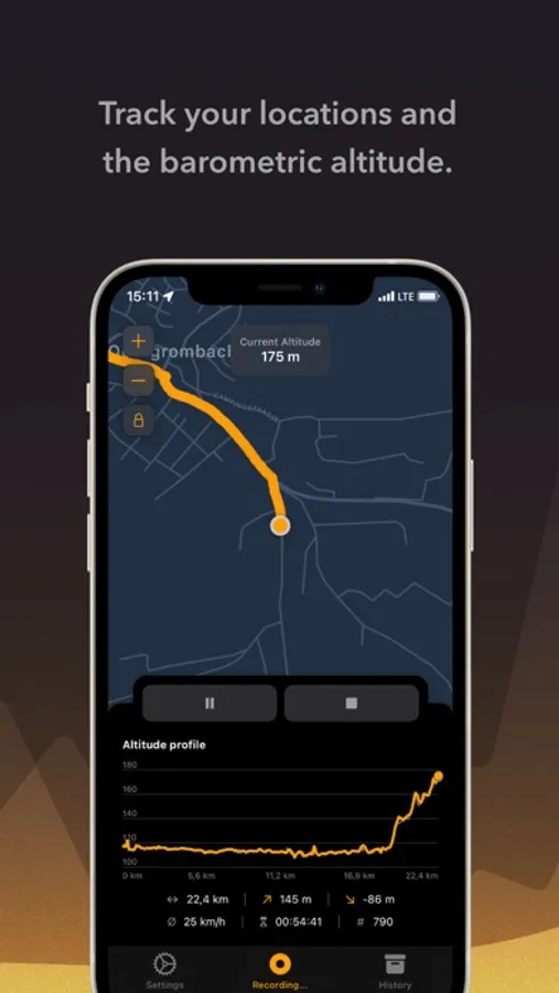 Baloc uses a combination of different sensors on your device to accurately determine your altitude. The resulting data allows for more accurate positioning, even in case of temporarily missing or bad GPS signal.