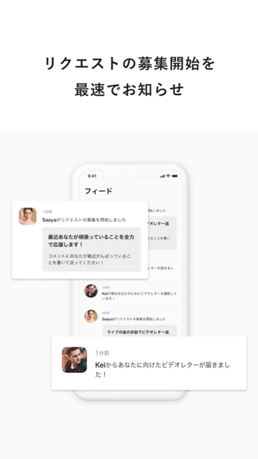 ※アプリからビデオレターのリクエストをすることはできません。各タレントのWEBサイトからリクエストしてください。