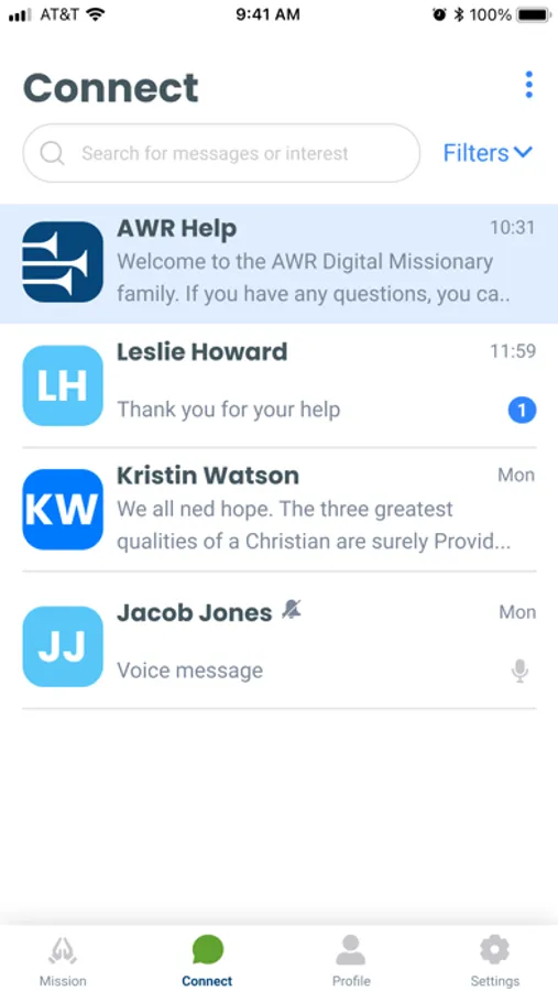 This app is an important part of that mission. It uses a powerful, easy-to-use chat experience to connect mission-minded Seventh-day Adventist laypeople to those who are seeking Jesus—building friendships for eternity.