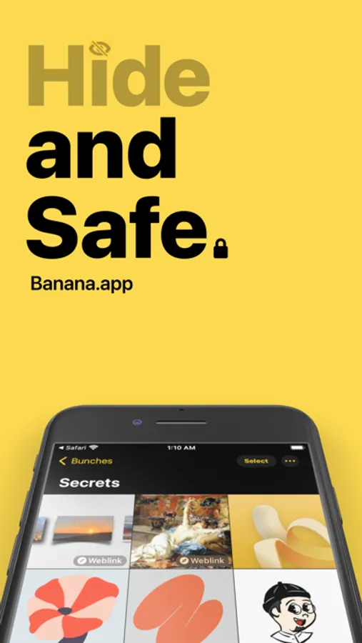 With Banana, you can manage all your "secrets" such as videos, photos, web bookmarks, etc. that you don't want anyone to see.