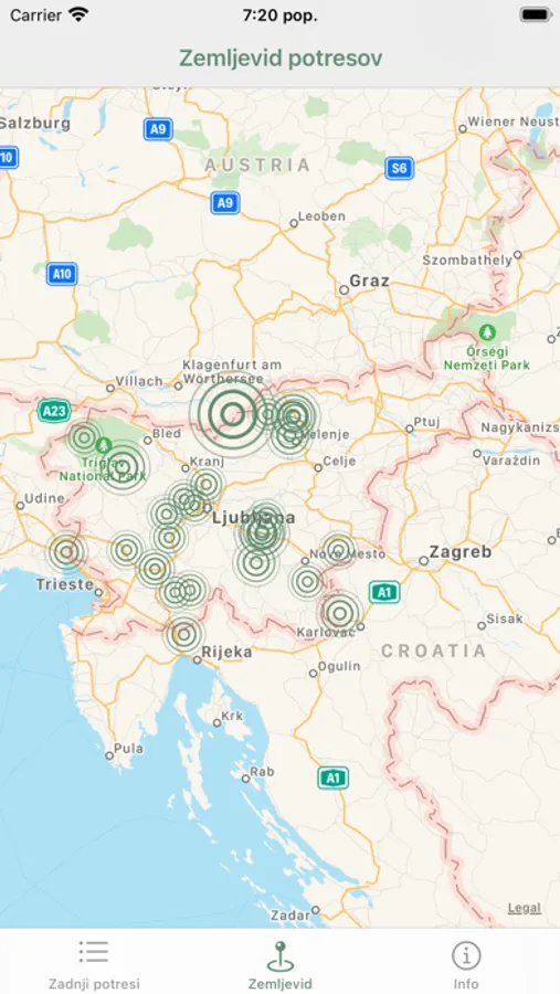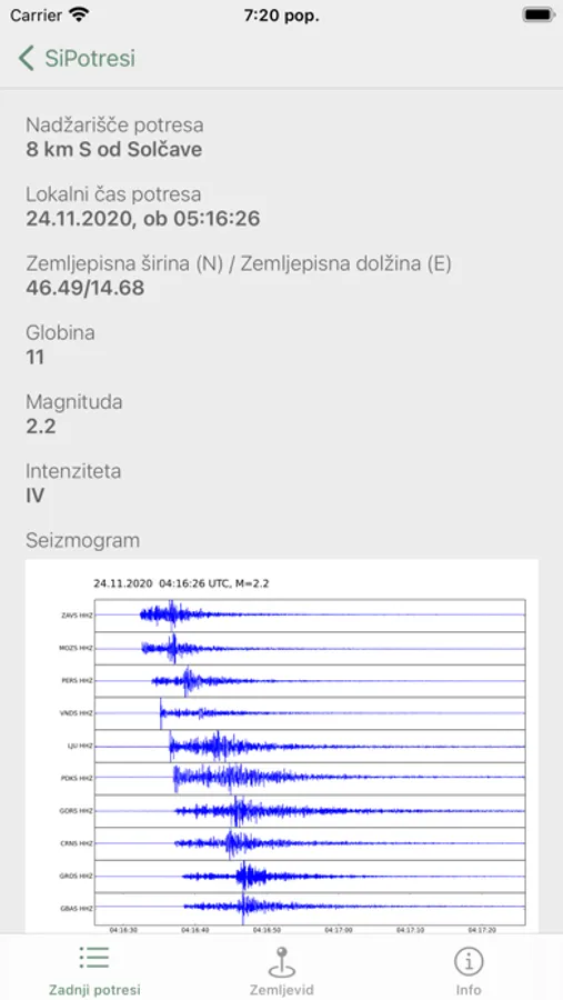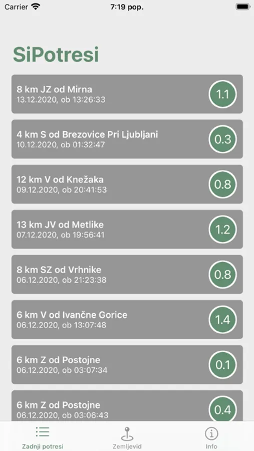 Aplikacija SiPotresi prikazuje podatke o zadnjih potresih v Sloveniji in bližnji okolici.