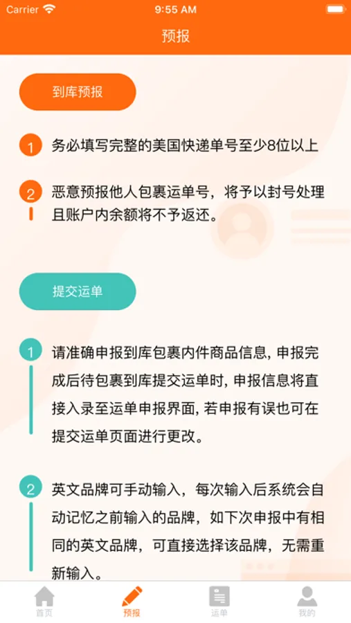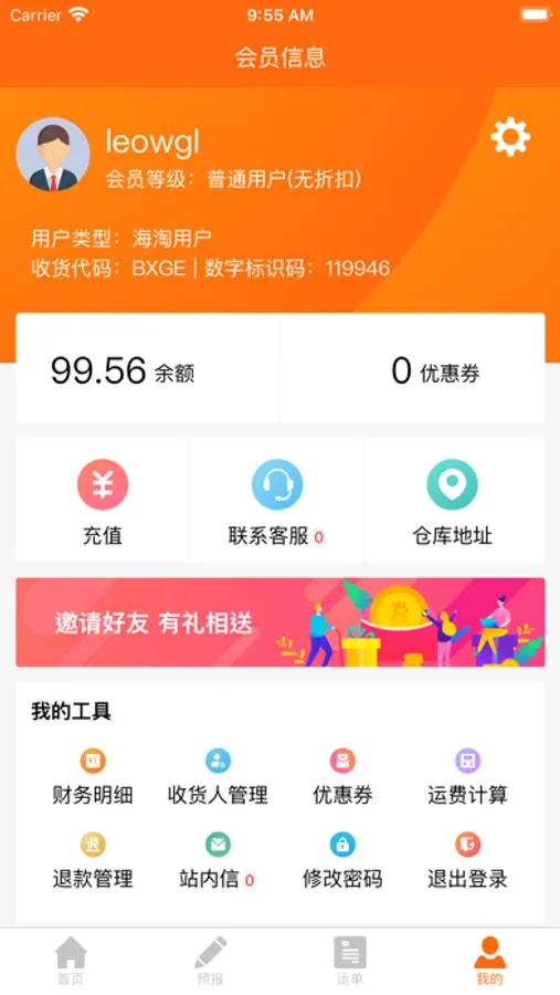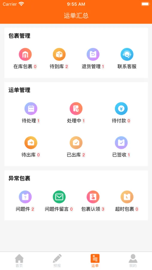 转运国际App主要提供会员用户管理运单使用,主要功能如下,