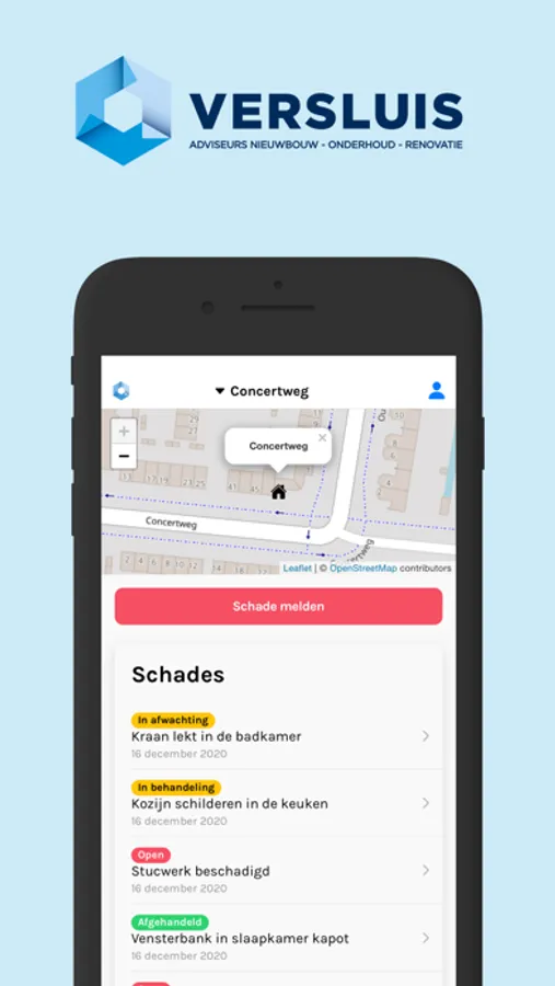 Met de Versluis App kan je als gebruiker gemakkelijk schades melden en bijhouden van vastgoed. Maak foto's, geef de urgentie aan en krijg terugkoppeling over het verloop van de opvolging. Onze app is overzichtelijk, makkelijk in gebruik en biedt een geweldig mogelijkheid om schades snel te kunnen inventariseren en op te lossen.