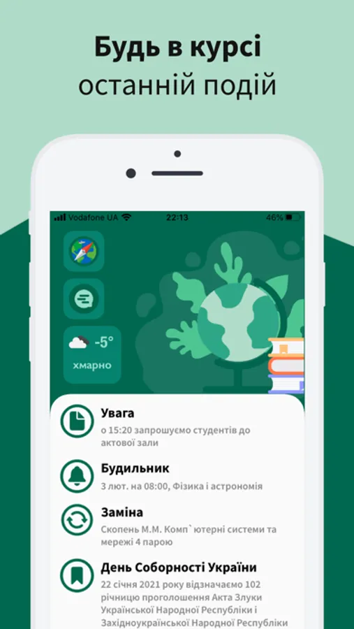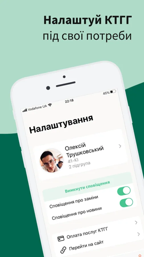 Мій КТГГ - це твій особистий асистент. Тут ти можеш знайти актуальний розклад та заміни, дізнатись про останні події твого навчального закладу та ще багато корисних функцій. Зроби навчання зручним!
