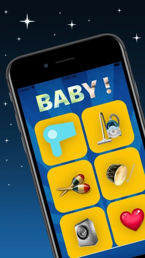 Hairdryer, Hoover, Maracas, Drum, Washer, Heart, White Noise, Xylophone, Fan, Kettle, Blender, Mixer, Drill, Harmonica