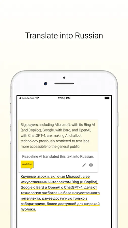 Ever wish the internet spoke YOUR language? With our AI-driven rewording tool, it kind of does. Whether you're translating, summarizing, or just browsing, Readefine shapes the web to suit you. Readefine AI allows you to: