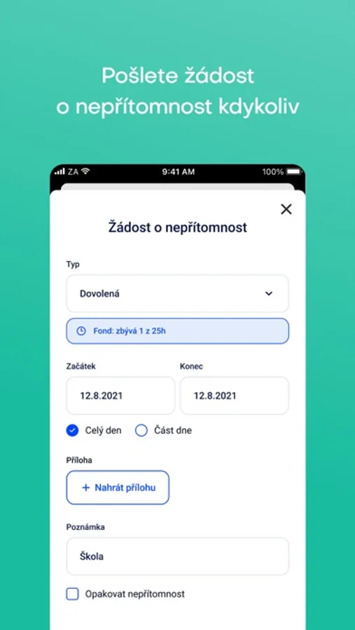 Nechte zaměstnance poslat žádost či sami vytvořte nepřítomnost vč. přílohy.