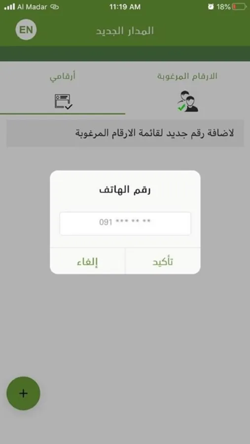 · عند الاشتراك في الخدمة لا يمكن الوصول للرقم إلا عن طريق الأرقام المدخلة (100 رقم كحد اقصى) في القائمة البيضاء.